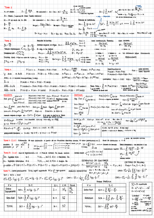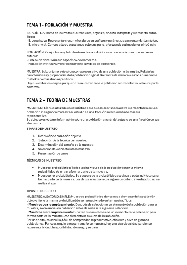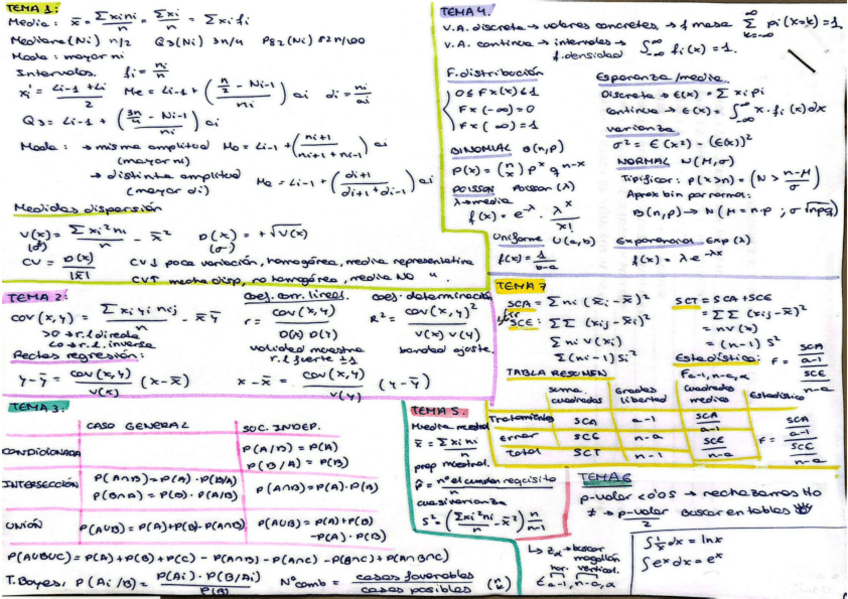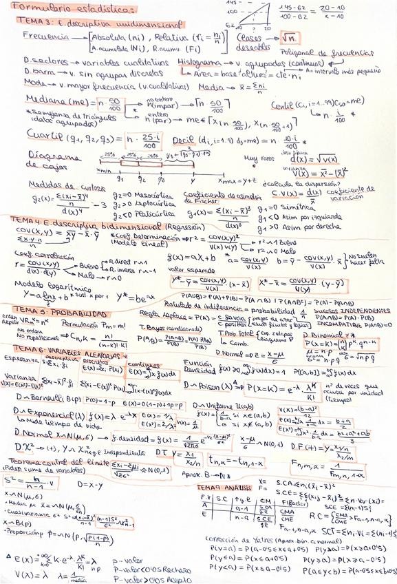 Apuntes de temario + Formulario Estadística