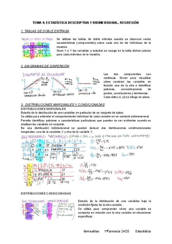 U4. Estadistica descriptiva bidimensional. Regresion. Apuntes + ejercicios explicativos