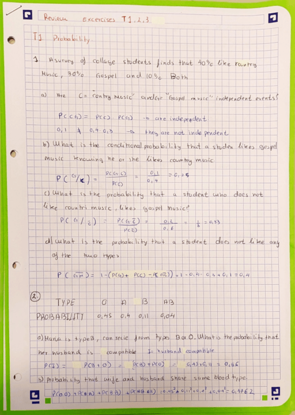 He publicado nuevos apuntes de 2º Estadística: Excercises For Exams