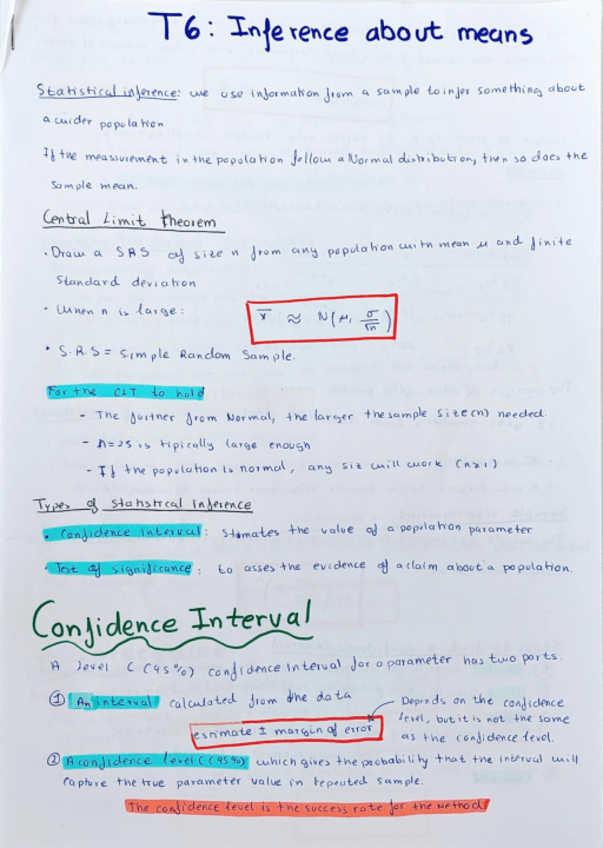 He publicado nuevos apuntes de 2º Estadística: Inference-about-means-.pdf