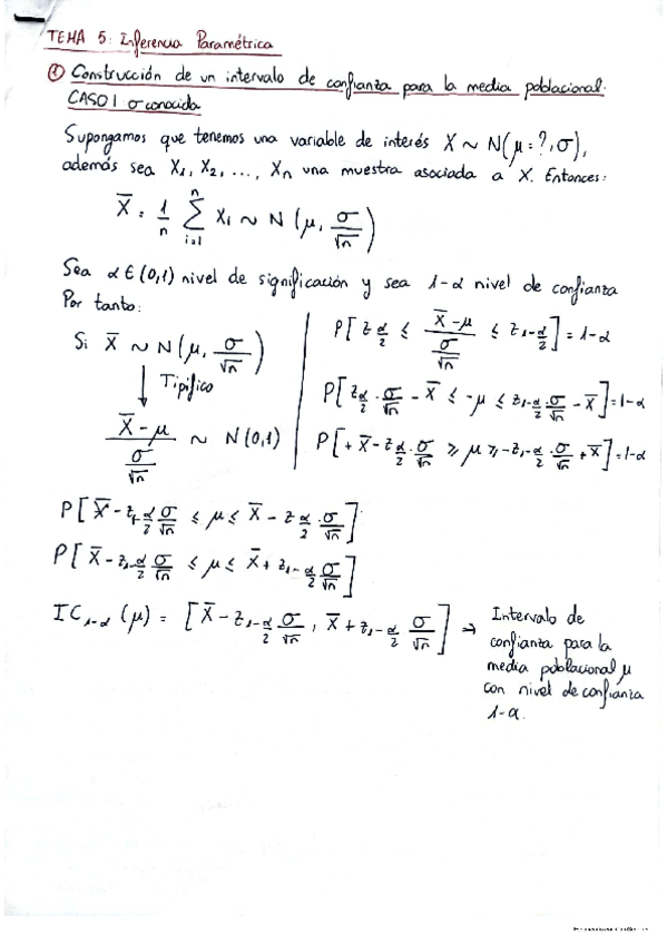 RESUMEN TEORÍA + FORMULAS TEMA 5: INFERENCIA PARAMETRICA