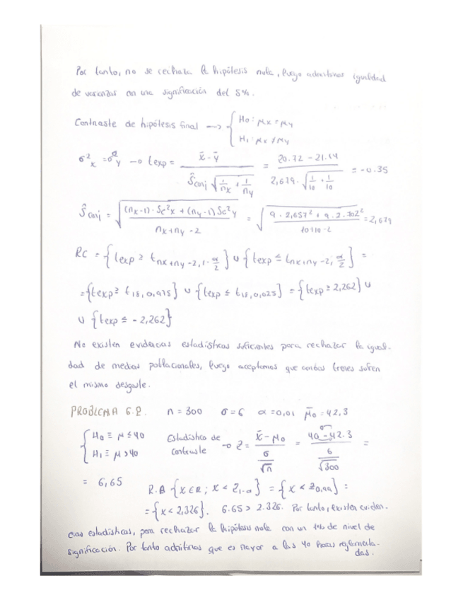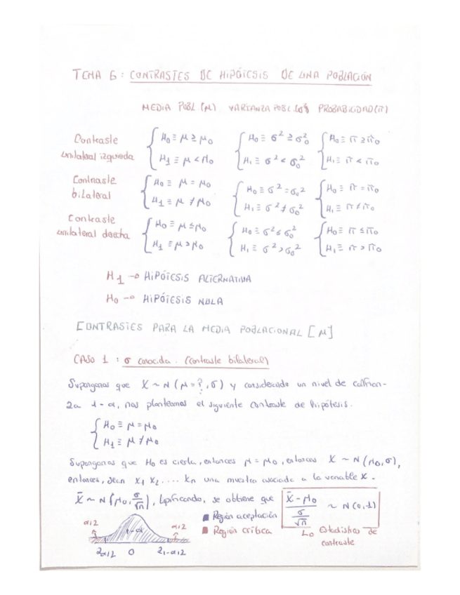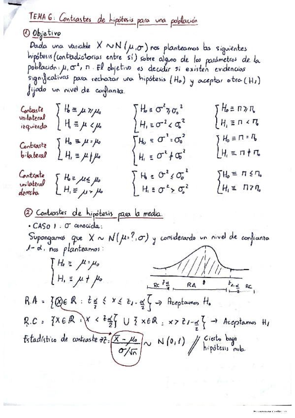 APUNTES EJERCICIOS Y FORMULARIO TEMA 6: CONTRASTES DE HIPÓTESIS