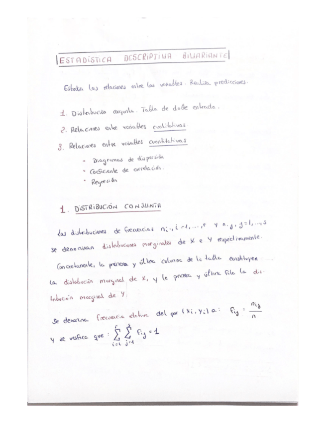 APUNTES Y FORMULARIO TEMA 2: ESTADISTICA DESCRIPTIVA BIVARIANTEP
