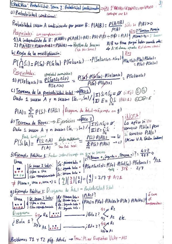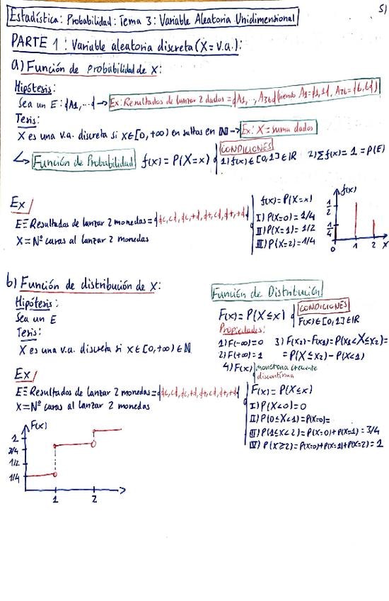 Apuntes tema por tema de la parte 1 de estadística. Combinatoria, probabilidad y variable aleatoria.
