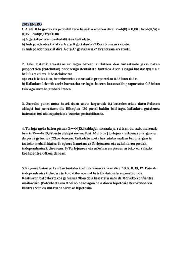 He publicado nuevos examenes de 2º Estadística: ESTADISTICAEXAMENES2015.pdf