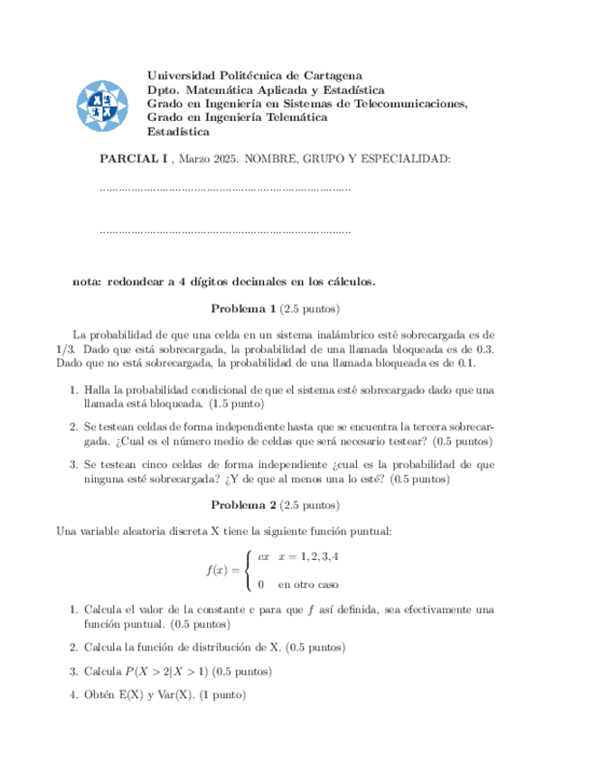 He publicado nuevos examenes de 1º Estadística: parcial1-estadistica.pdf