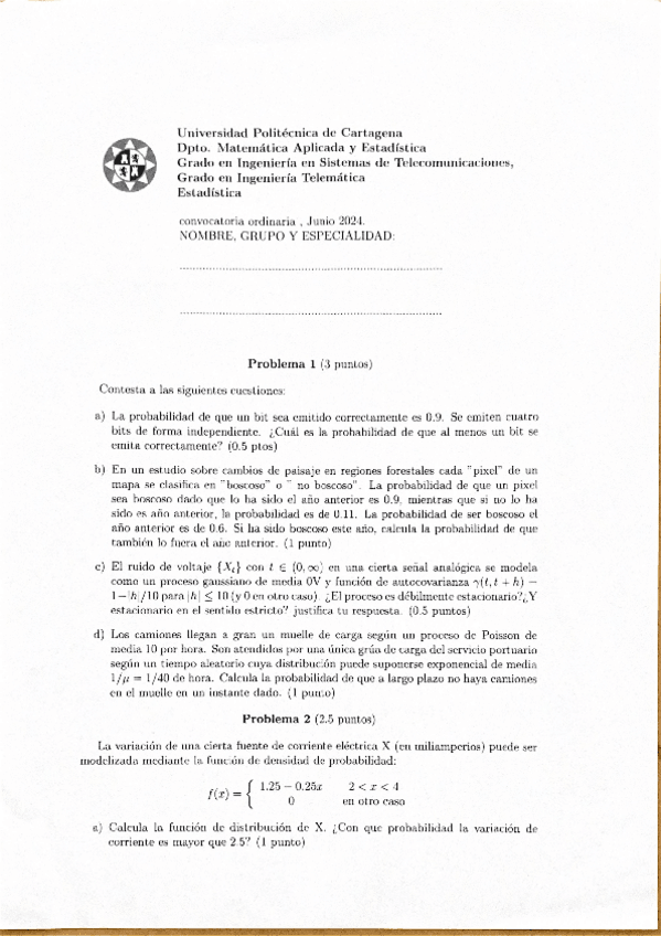 He publicado nuevos examenes de 1º Estadística: Soluciones examen global junio 2024.pdf
