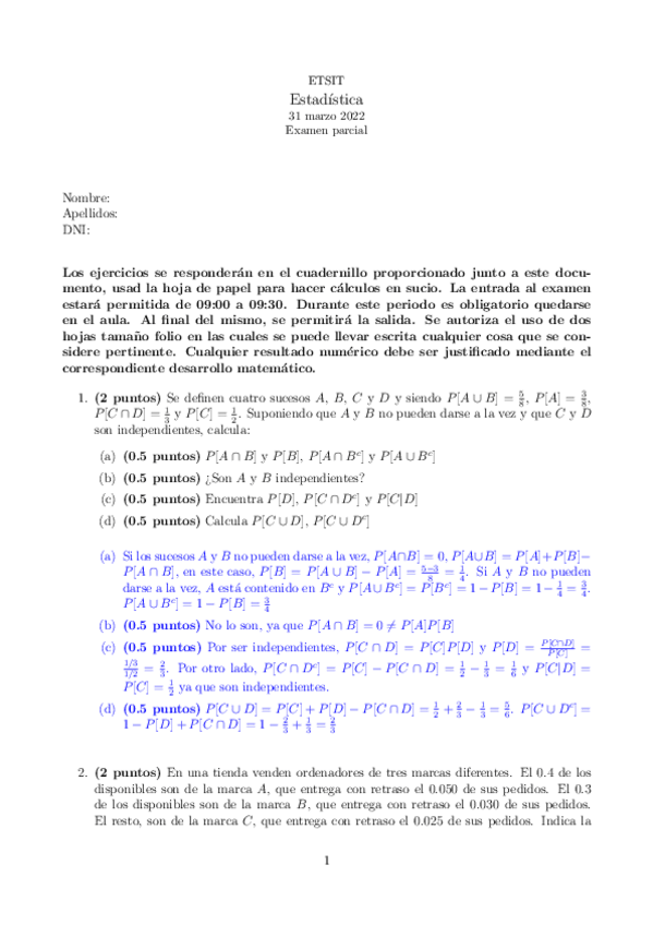 He publicado nuevos examenes de 1º Estadística: Parcial1Estadistica.pdf