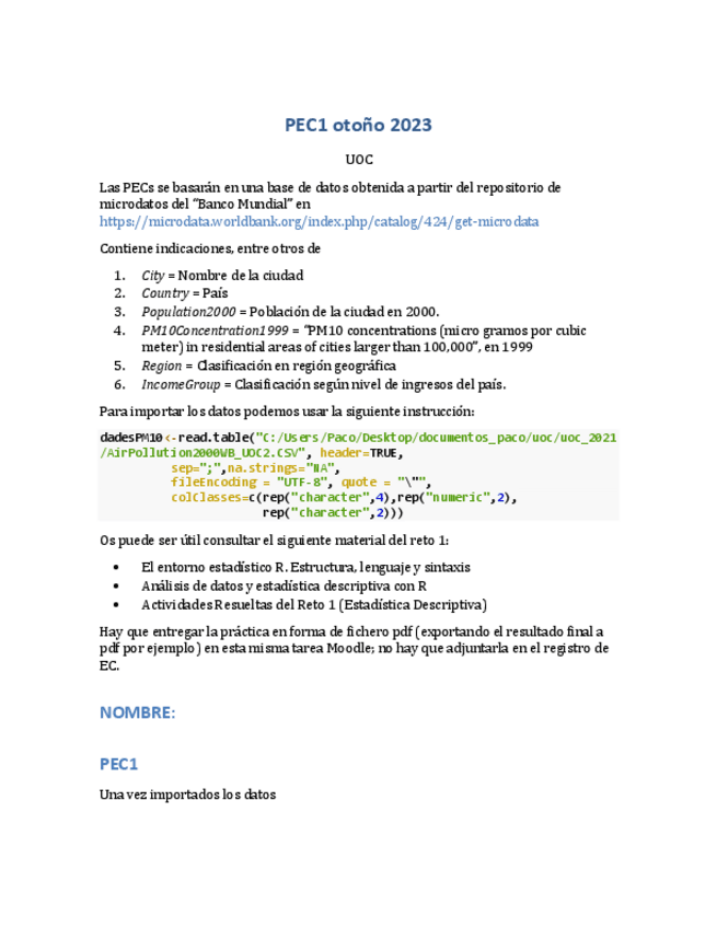 He publicado nuevos practicas de 2º Estadística: PEC1T23SOL.pdf