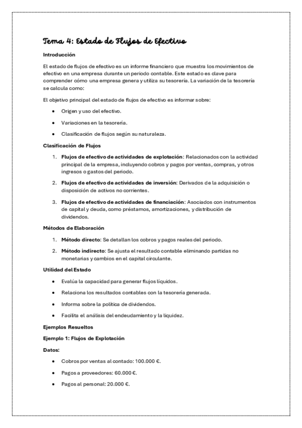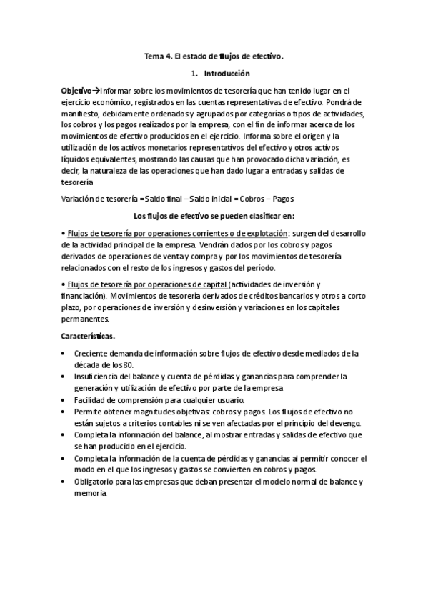 Resumen de manera teórica de Estado de Flujos de Efectivo del Tema 4