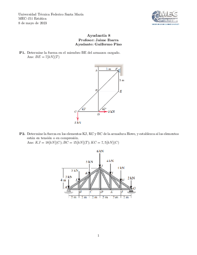 He publicado nuevos ejercicios de 3º Estática: Ayudantia-8-S1-2023.pdf