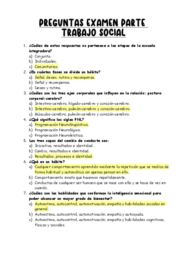 En este documento aparecen las preguntas del examen de la parte de psicología social y los apuntes correspondientes