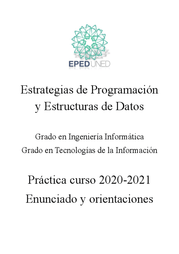 He publicado nuevos apuntes de 1º Estrategias de Programación y Estructuras de Datos: EPEDPractica2020.pdf