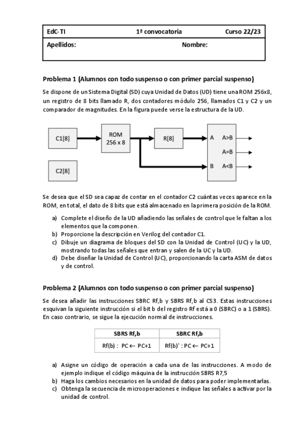 He publicado nuevos examenes de 1º Estructura de Computadores: 1PrimeraConvocatoriaJunio2023.pdf
