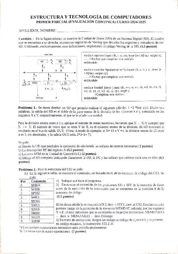 He publicado nuevos examenes de 1º Estructura de Computadores: Enunciado-2-parcial.pdf