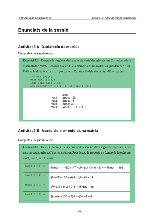He publicado nuevos practicas de 1º Estructura de Computadores: EC - Pràctica Sessió 3 Matrius.pdf