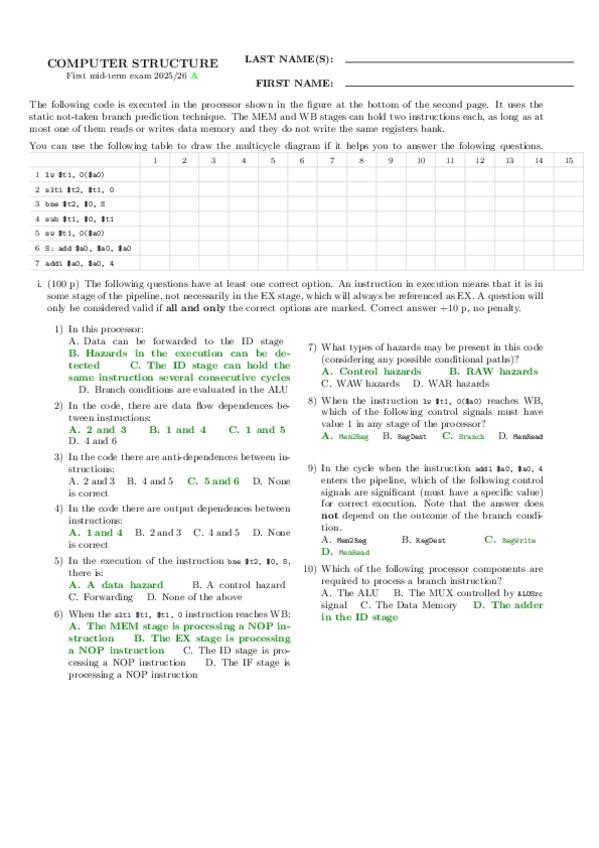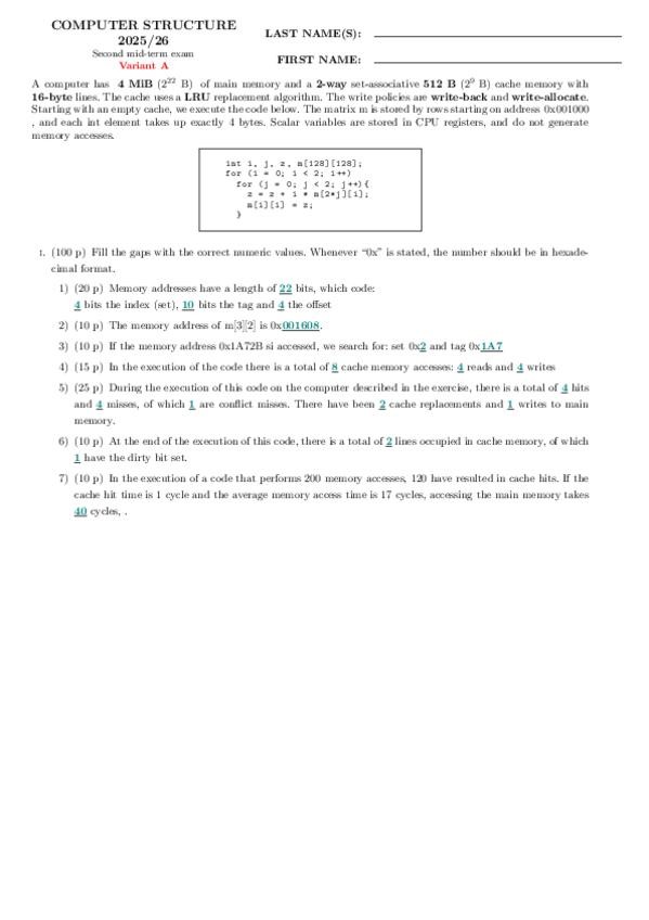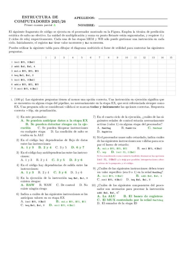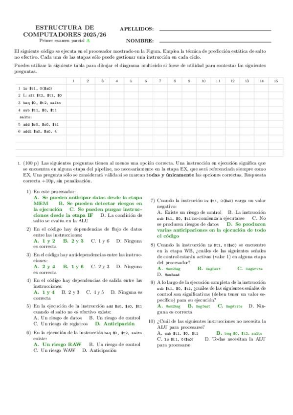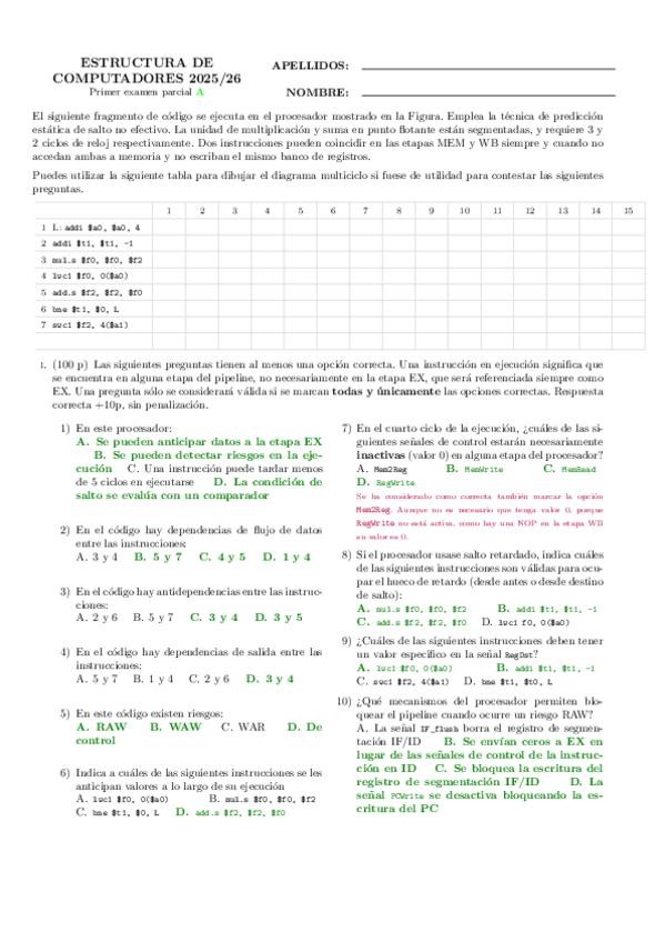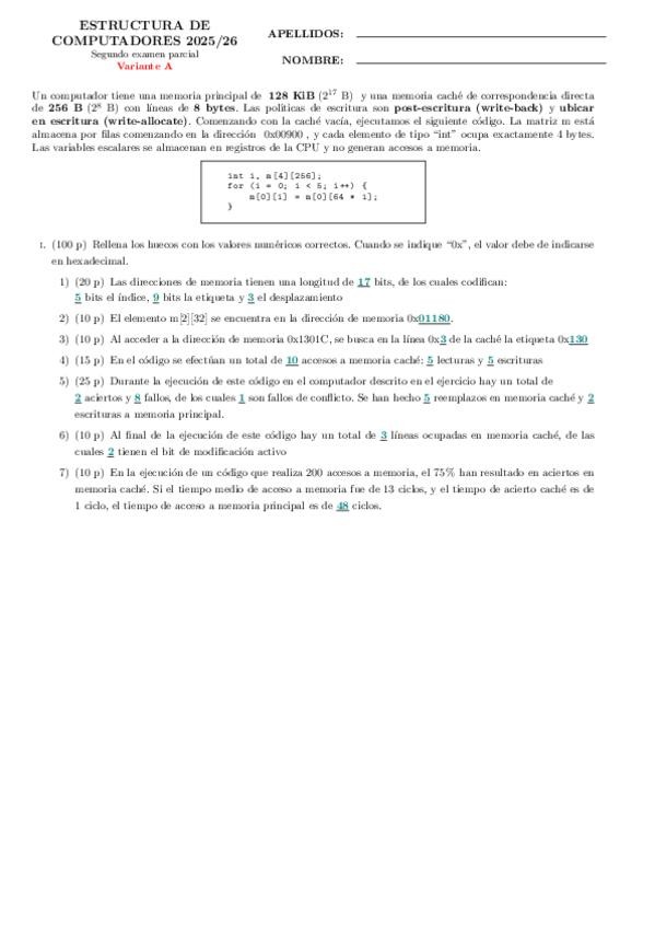 He publicado nuevos examenes de 2º Estructura de Computadores: parcial1_modeloexamen_espanol_25-26.pdf