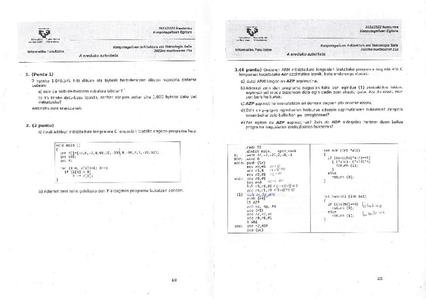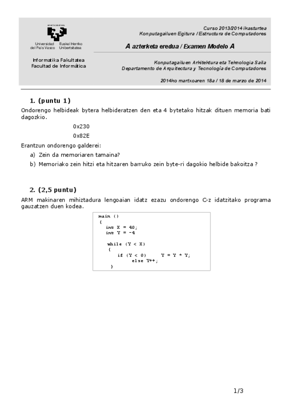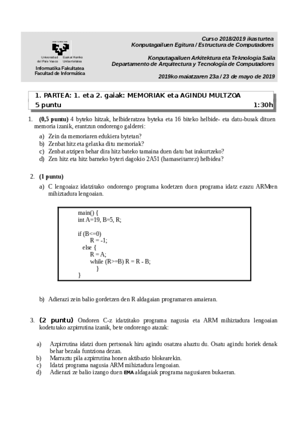 He publicado nuevos examenes de 1º Estructura de Computadores: Azterketak