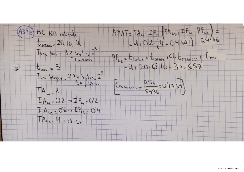 He publicado nuevos ejercicios de 2º Estructura de Computadores: Tema-3-A39c-Ejercicio-de-TMA-MC-multinivel-y-penalizacion-por-fallo-con-memoria-NO-entrelazada-L1L2.pdf