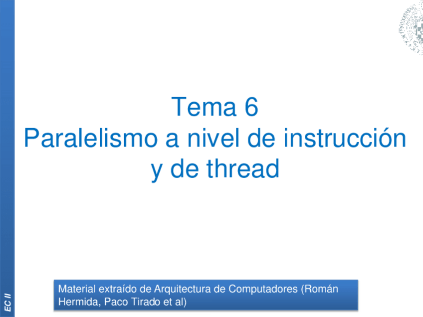 He publicado nuevos apuntes de 2º Estructura de Computadores: 6-Paralelismo.pdf