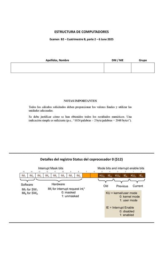 He publicado nuevos examenes de 2º Estructura de Computadores: 24-25-Parcial-A1-Borrado.pdf