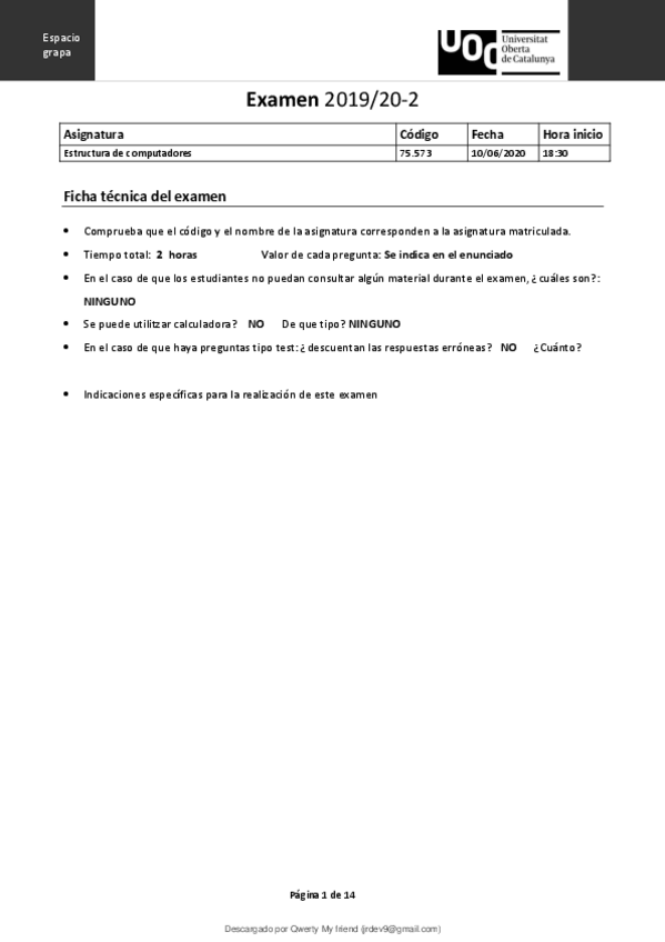 He publicado nuevos examenes de 2º Estructura de Computadores: examen-junio-2020.pdf