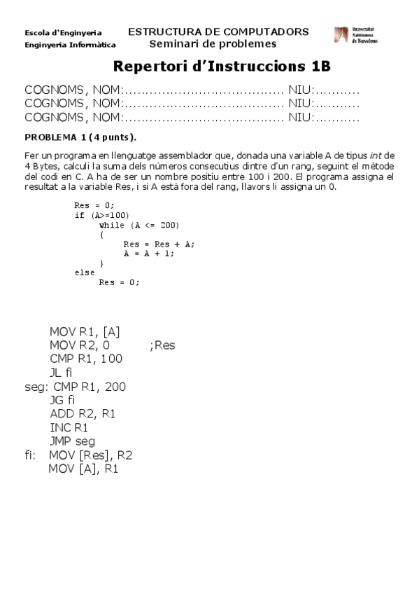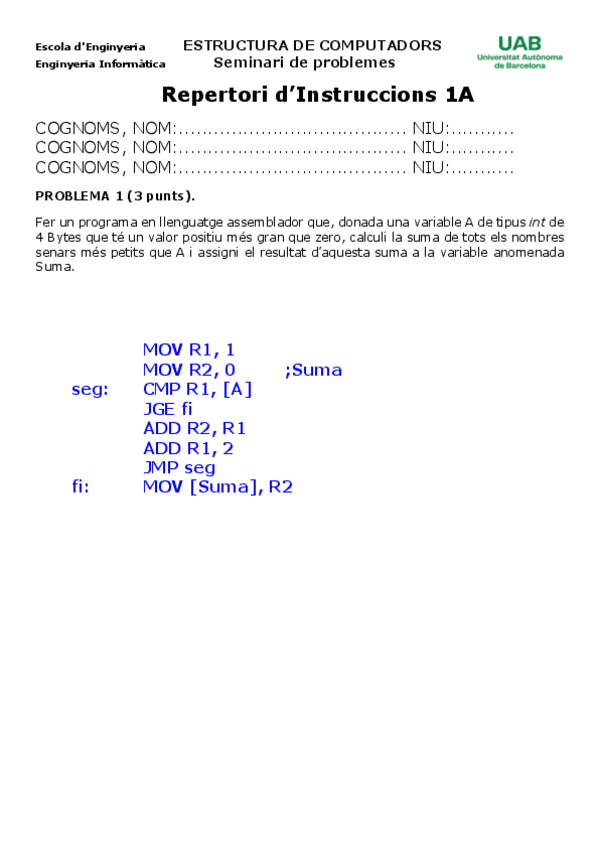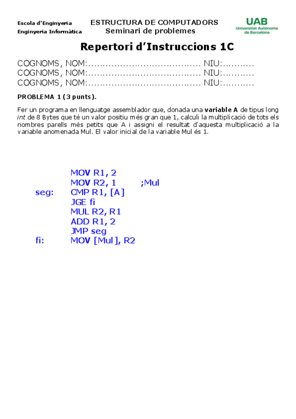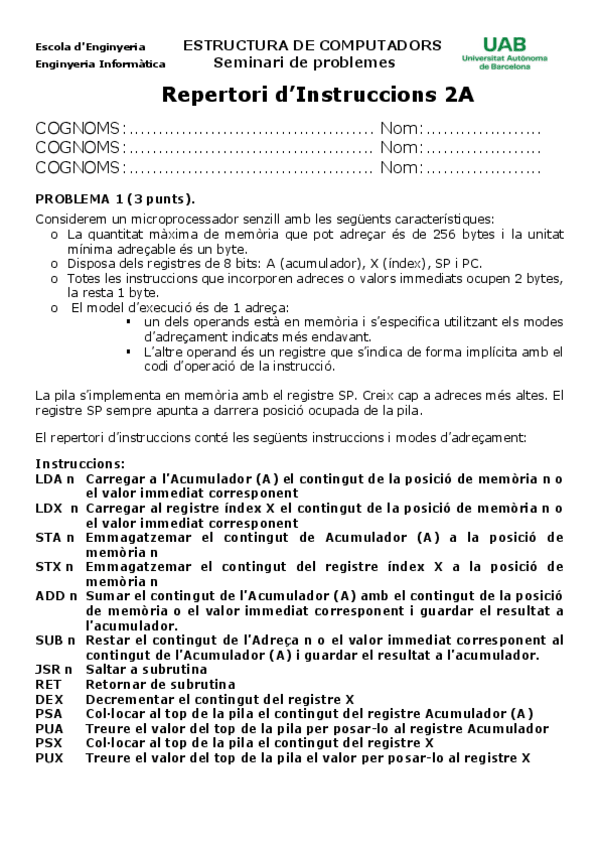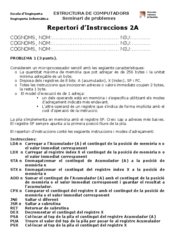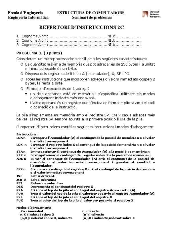 He publicado nuevos examenes de 2º Estructura de Computadors: Seminarios Para Practicar 1r Parcial