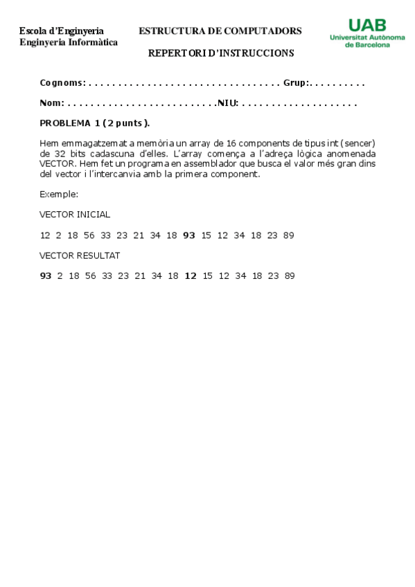 He publicado nuevos examenes de 2º Estructura de Computadors: Seminari 2 MEMORIA