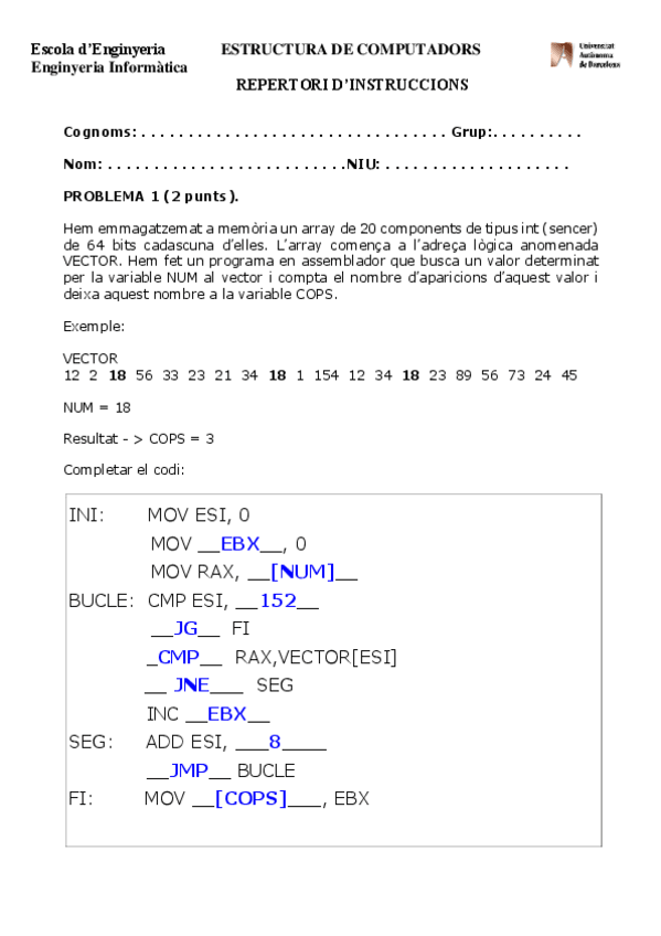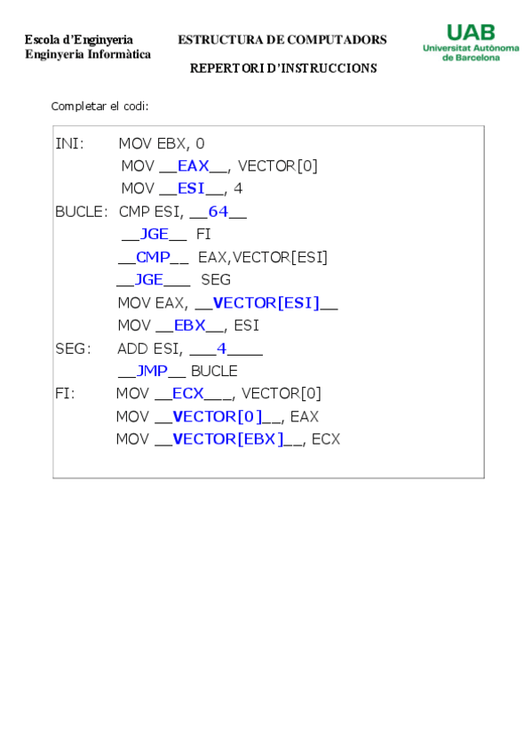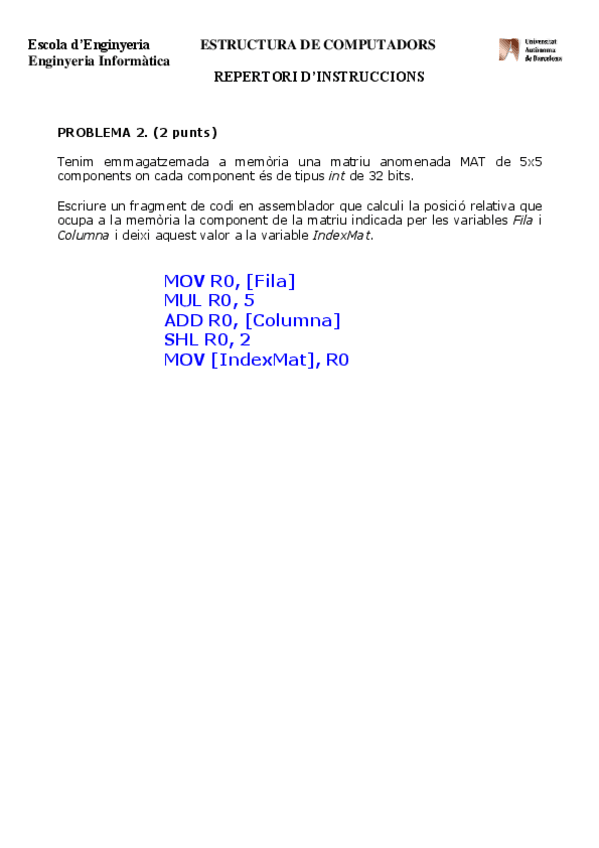 He publicado nuevos ejercicios de 2º Estructura de Computadors: Seminari 5