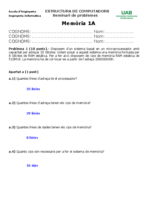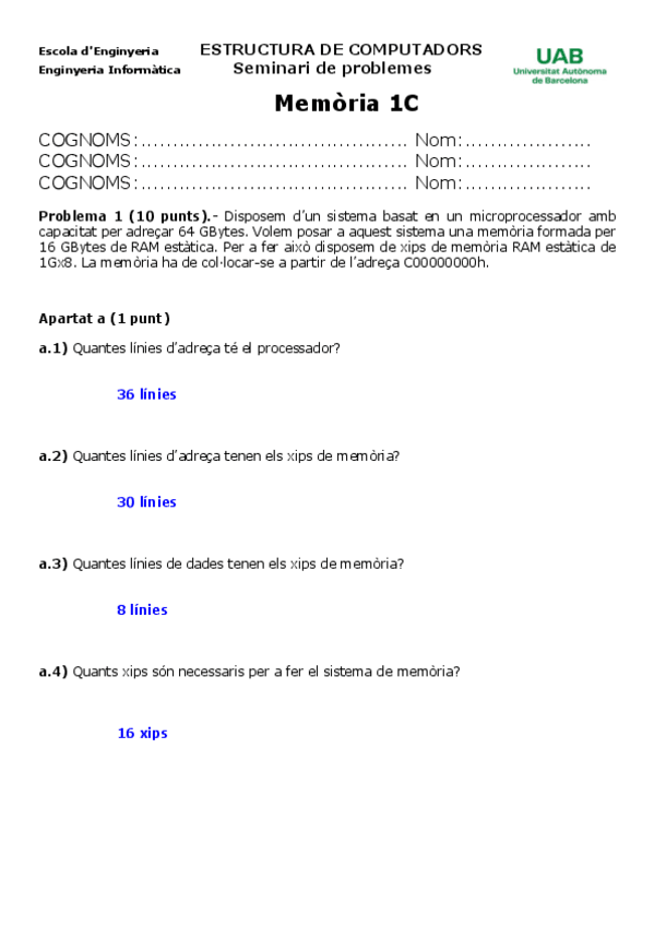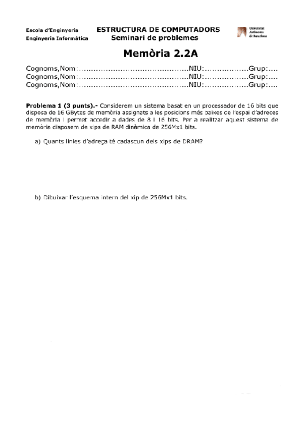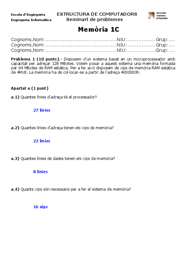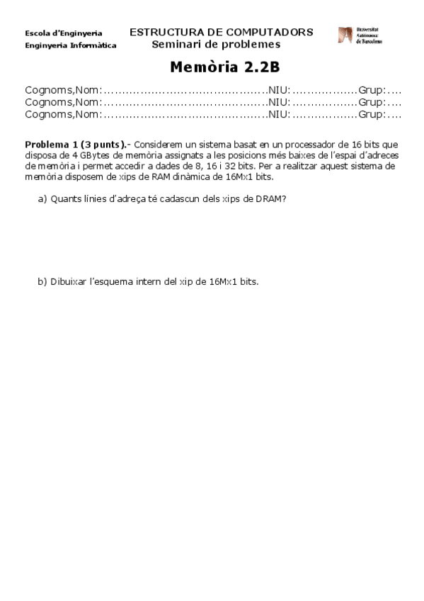 He publicado nuevos examenes de 2º Estructura de Computadors: Seminari 4 Memoria2