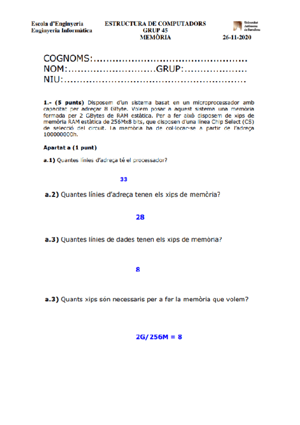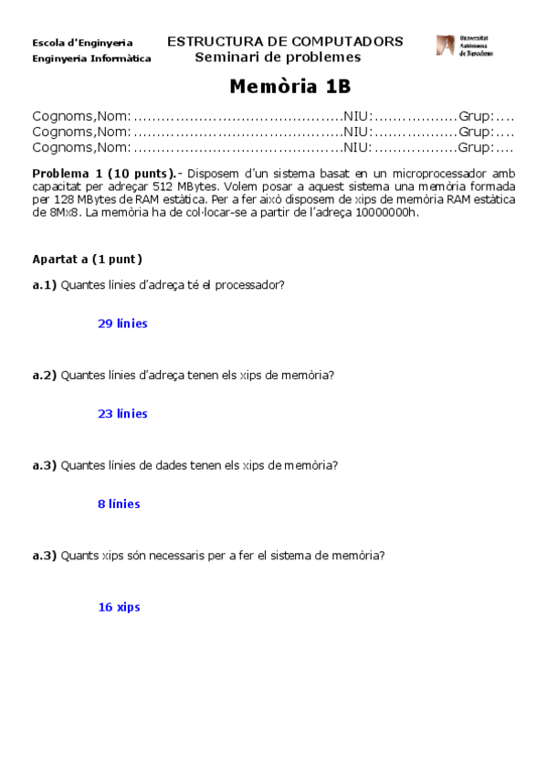 He publicado nuevos examenes de 2º Estructura de Computadors: Recopilacio parcial 2 Memoria