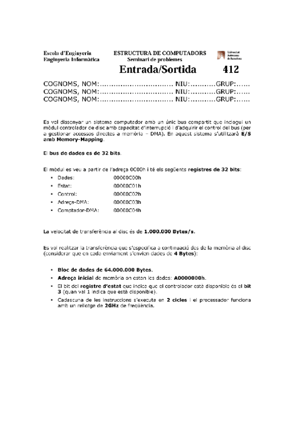 He publicado nuevos examenes de 2º Estructura de Computadors: Solució Seminari 5 E/S 2024/2025