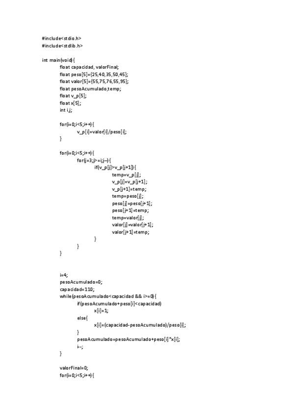 Codigo c de algunos algoritmos