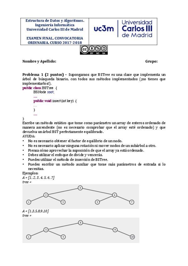 He publicado nuevos examenes de 1º Estructura de Datos y Algoritmos: Problemas-Examen-BST.pdf