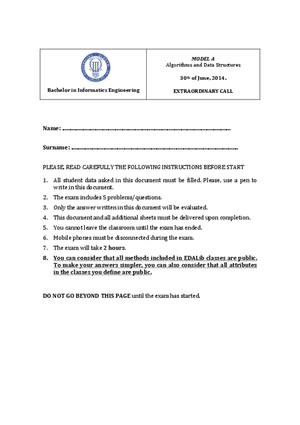 He publicado nuevos examenes de 1º Estructura de Datos y Algoritmos: EDA-mayo-2324ORDINARIOv6.docx.pdf
