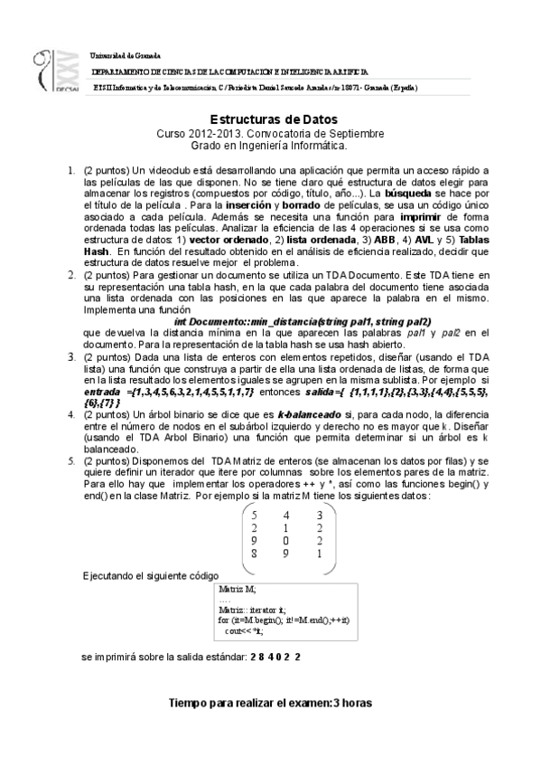 He publicado nuevos examenes de 2º Estructura de Datos: Examen-ED-enero-2023.pdf