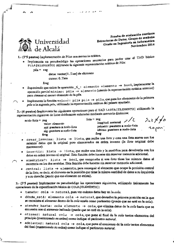 He publicado nuevos examenes de 2º Estructura de Datos: examenes
