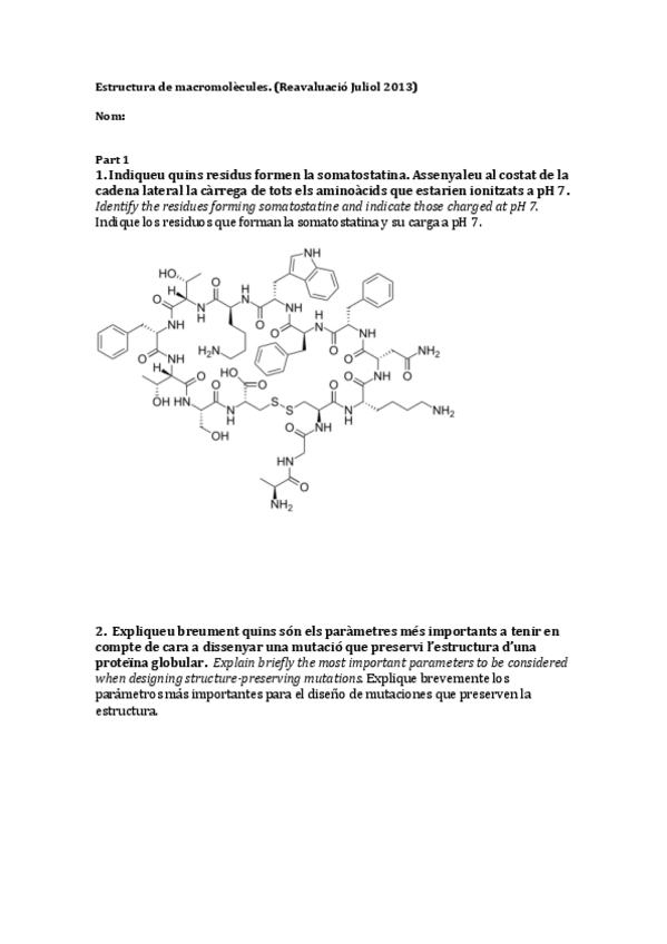 He publicado nuevos examenes de 2º Estructura de Macromoléculas: JULIOL-2013.pdf