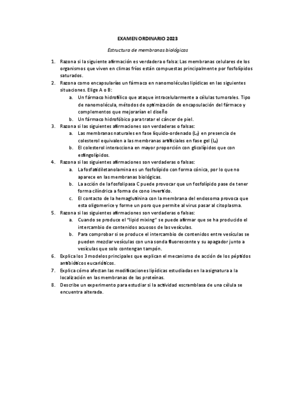 He publicado nuevos examenes de 2º Estructura de Membranas Biológicas: EXAMEN-ORDINARIO-2023.pdf