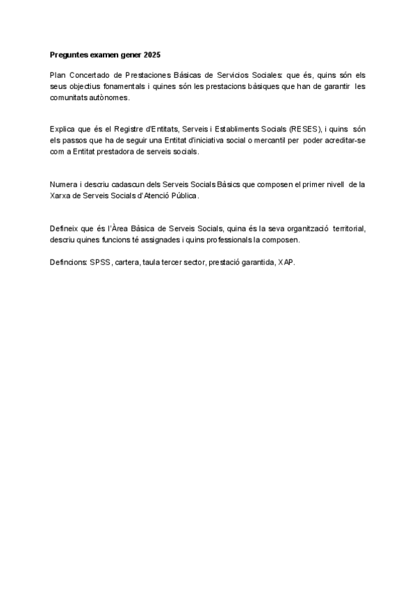 He publicado nuevos examenes de 2º Estructura de Serveis Socials: POSSIBLES-PREGUNTES-EXAMEN-BLOCS-3-I-4-ESTRUCTURA-DE-SERVEIS-SOCIALS.pdf