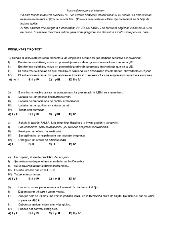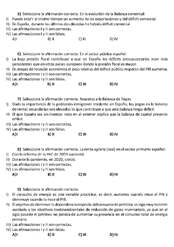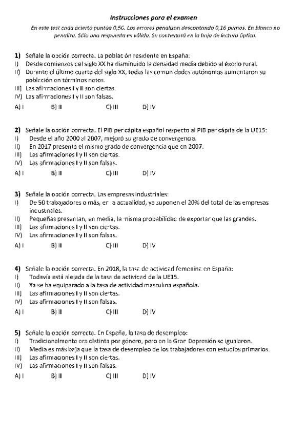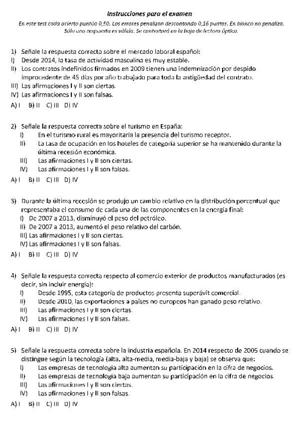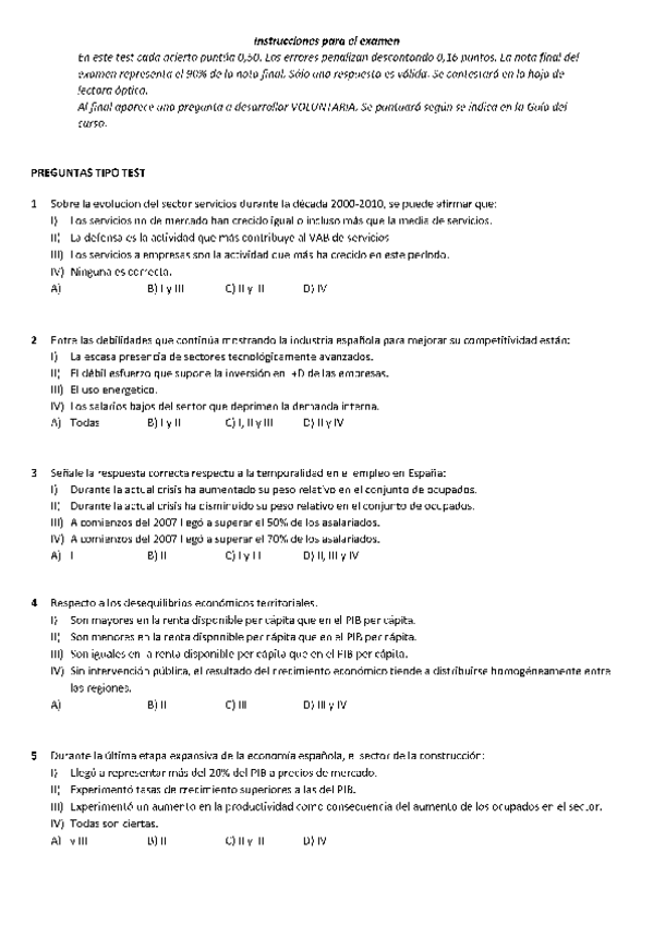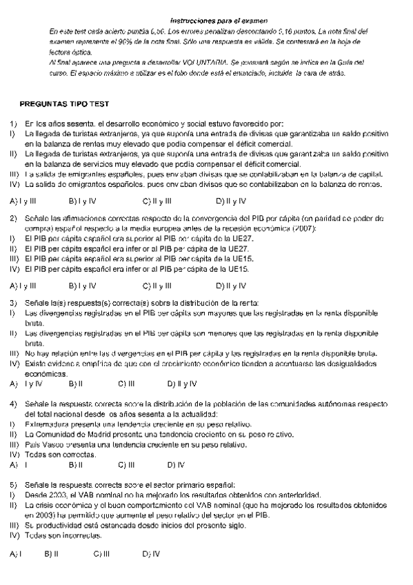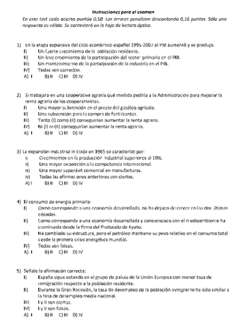 Exámenes con soluciones Estructura económica y financiera de España