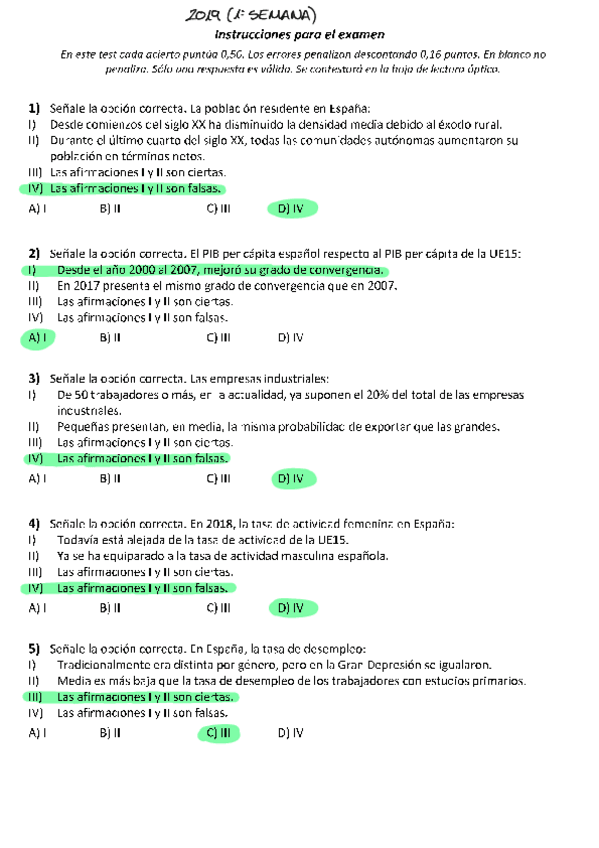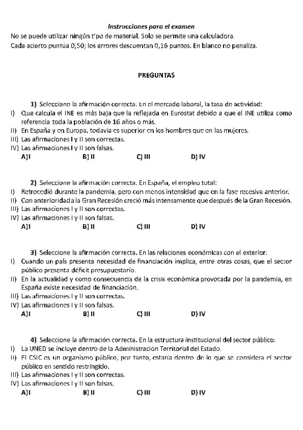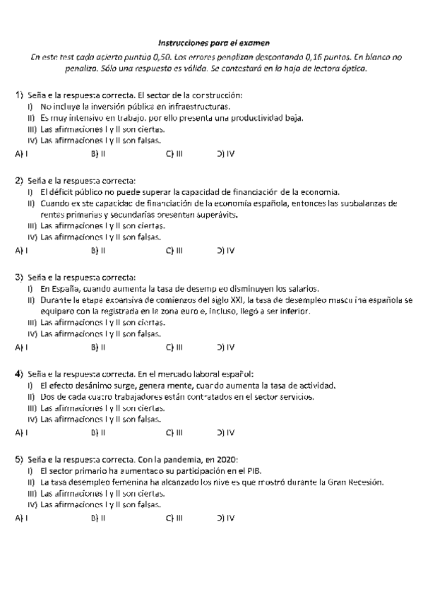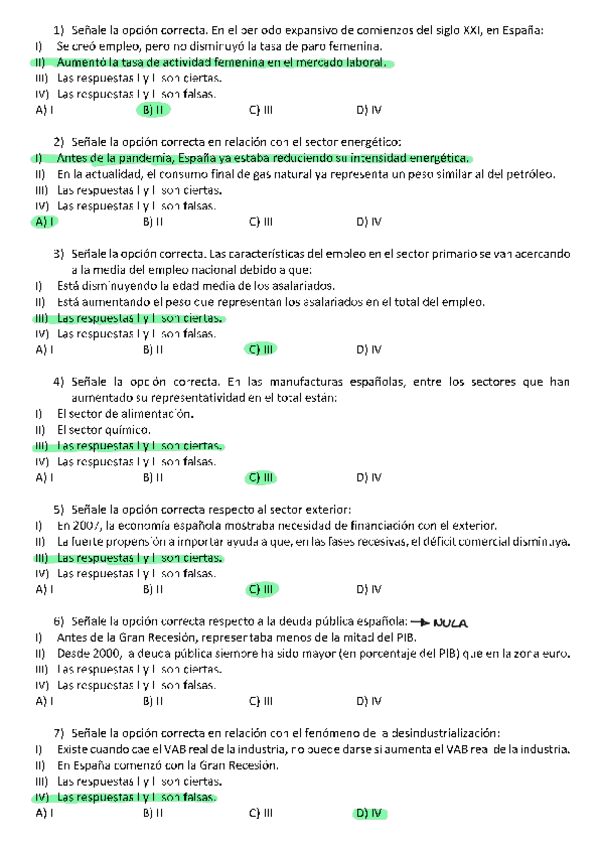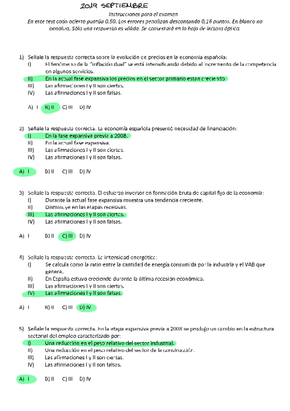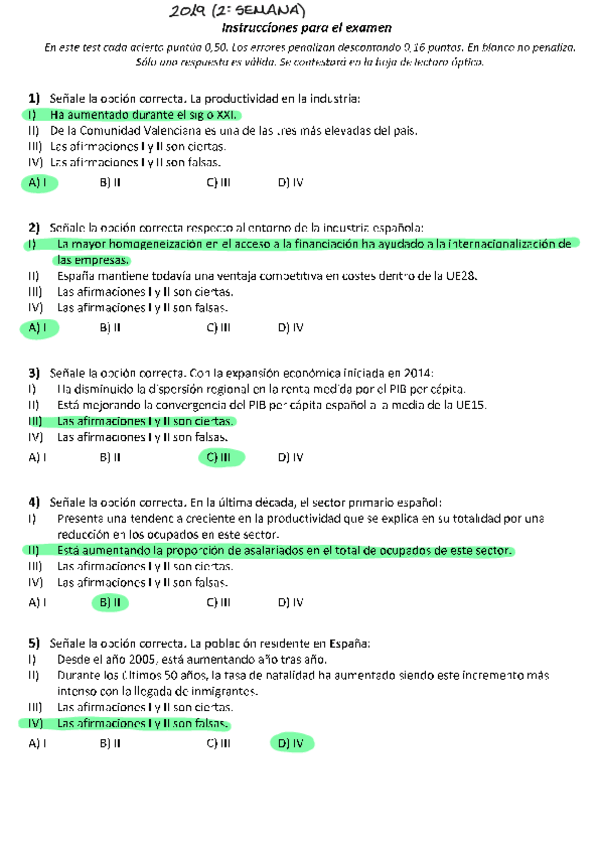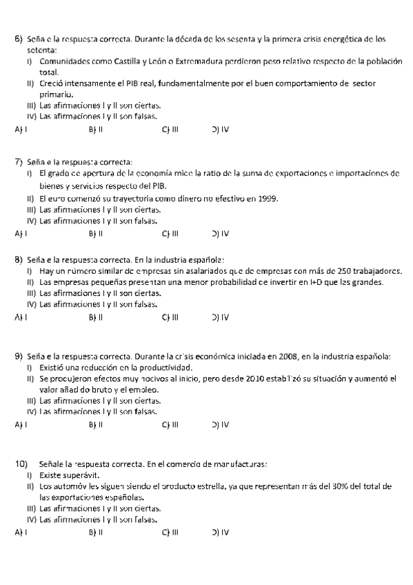 Exámenes con soluciones Estructura económica y financiera de España