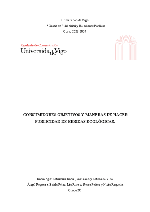 CONSUMIDORES OBJETIVOS Y MANERAS DE HACER PUBLICIDAD DE BEBIDAS ECOLÓGICAS. Trabajo del curso 2023-2024