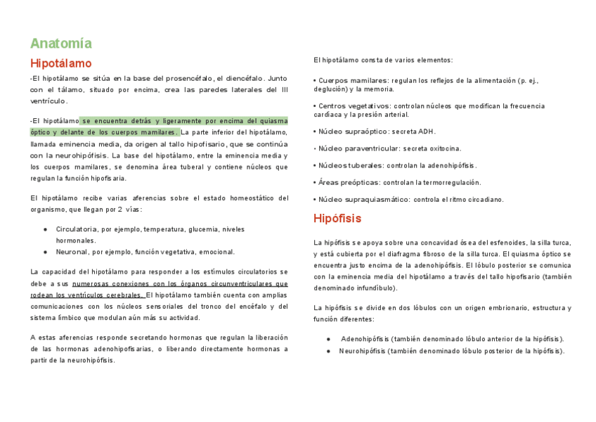 Macro y microesturcura del hipotálamo, hipófisis.