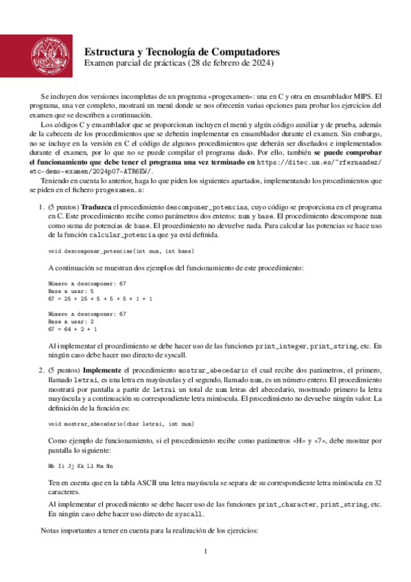 He publicado nuevos examenes de 1º Estructura y Tecnología de Computadores: Parcial-Prácticas-Febrero-2024