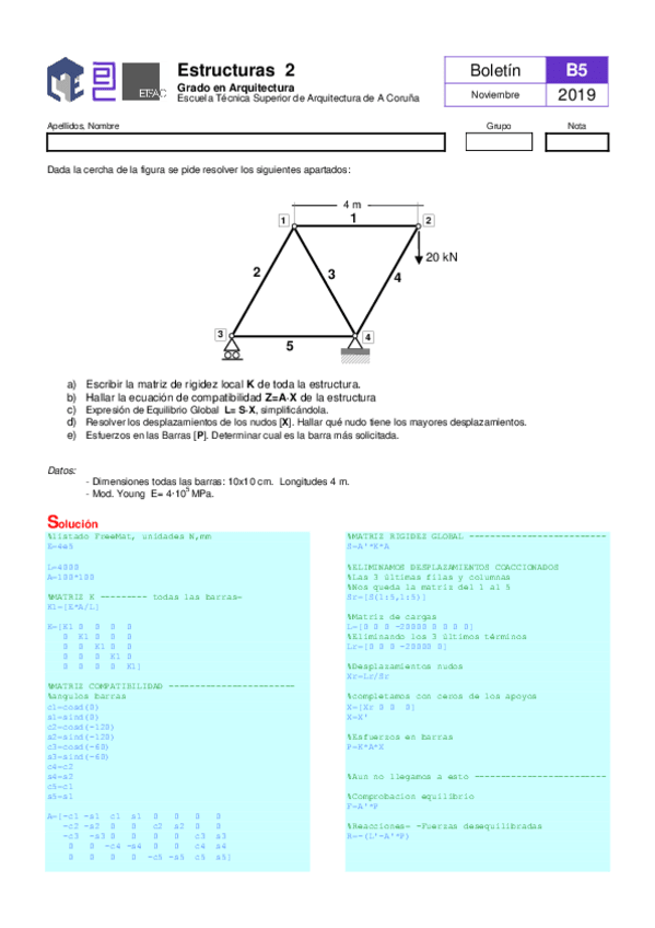 He publicado nuevos ejercicios de 3º Estructuras 2: Boletin-6-Matricial.pdf