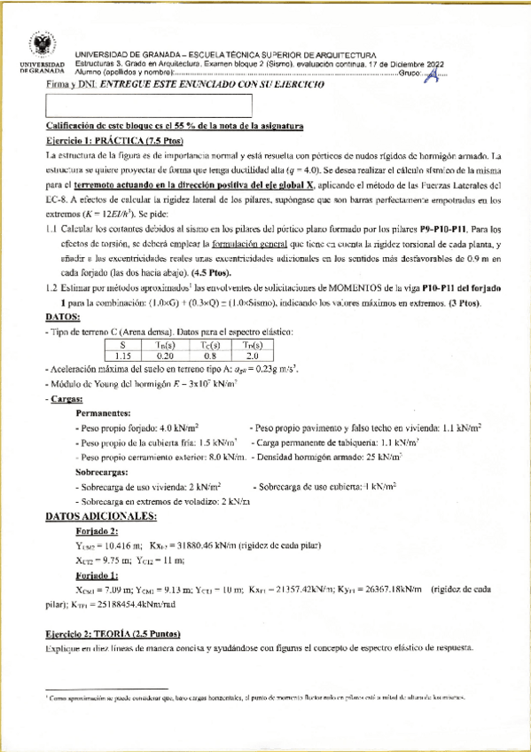 He publicado nuevos practicas de 5º Estructuras 3: Diafragmas Horizontales, Pantallas Triangulares y Hormigón Pretensado: PRACTICA-3.1-SISMO.pdf