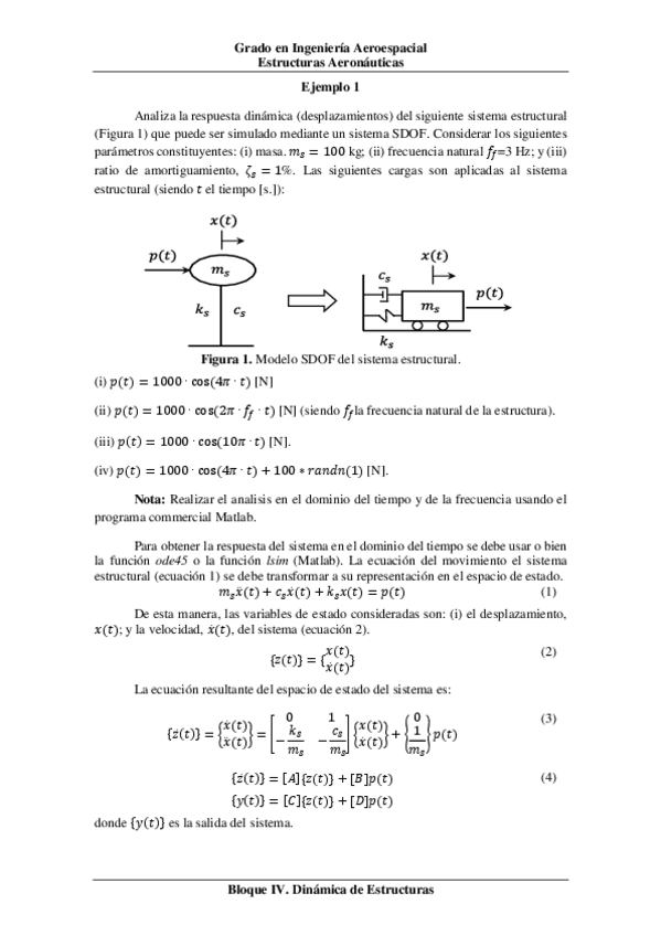 He publicado nuevos ejercicios de 3º Estructuras Aeronáuticas: Código-Matlab-Falso final-Dinámica