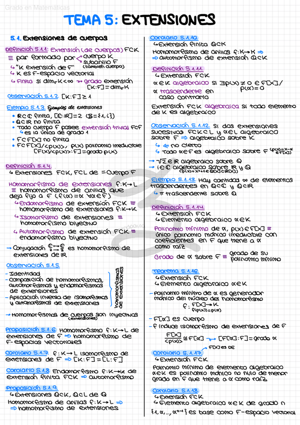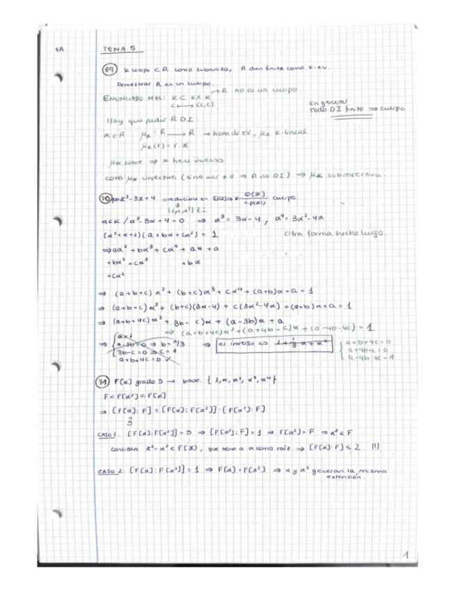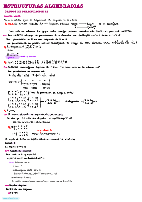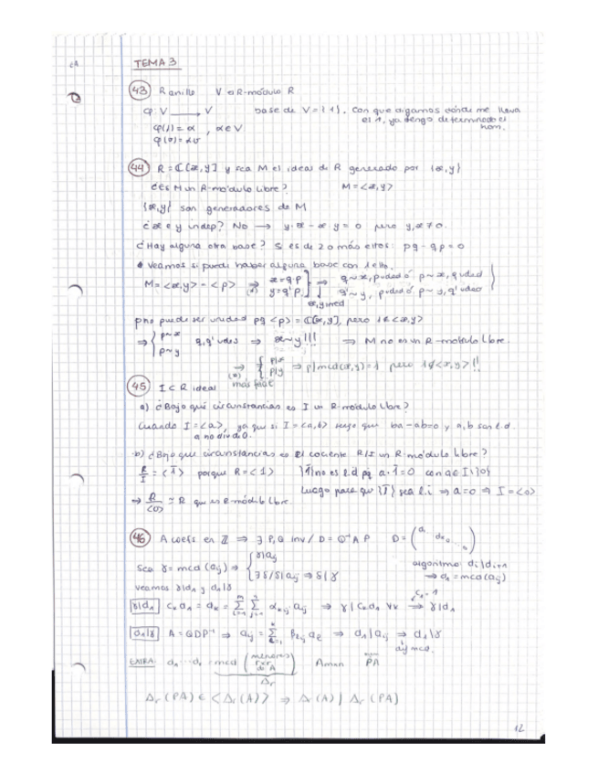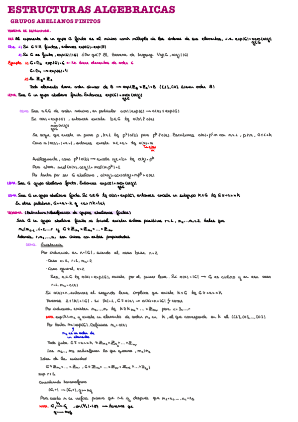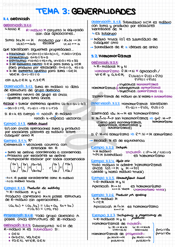 Apuntes manuscritos en clase. Contiene las definiciones, teoremas y demostraciones más importantes de cada tema.