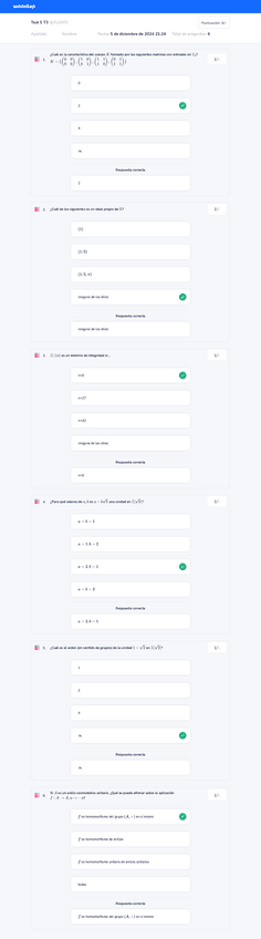He publicado nuevos examenes de 2º Estructuras Algebraicas: Test de clase resueltos Alejandra Garrido
